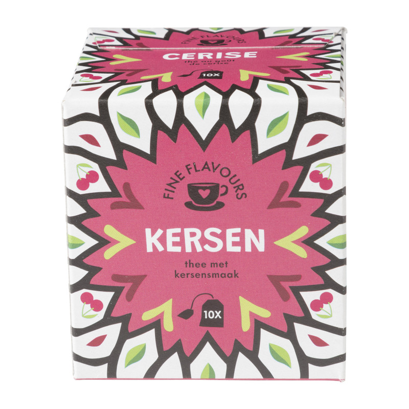 Deze thee met kersensmaak is lekker voor ieder moment van de dag. Je proeft de fruitige smaak van kersen direct terug in jouw kopje thee, lekker! De verpakking bevat 10 zakjes. Let op! Dit artikel is alleen per 3 stuks te bestellen. De getoonde prijs is de prijs per stuk.