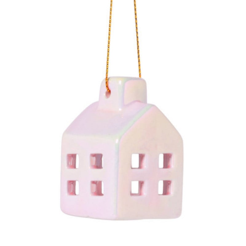 Voeg een vleugje charme en elegantie toe aan je kerstboom met deze prachtige kersthanger in de vorm van een huisje. Het huisje is een echte blikvanger, maar kan ook perfect gegeven worden als kerstcadeautje. Gemaakt van hoogwaardig keramiek, is dit schattige roze huisje een stijlvolle toevoeging aan je kerstboom of kerstdecoratie in huis. Hang 'm in je kerstboom, plaats het in een kerststuk, of gebruik het als onderdeel van een tafeldecoratie. Het huisje heeft een hoogte van 5.5 cm, een breedte van 3.5 cm en een diepte van 3.5 cm en is verkrijgbaar in meerdere kleuren.